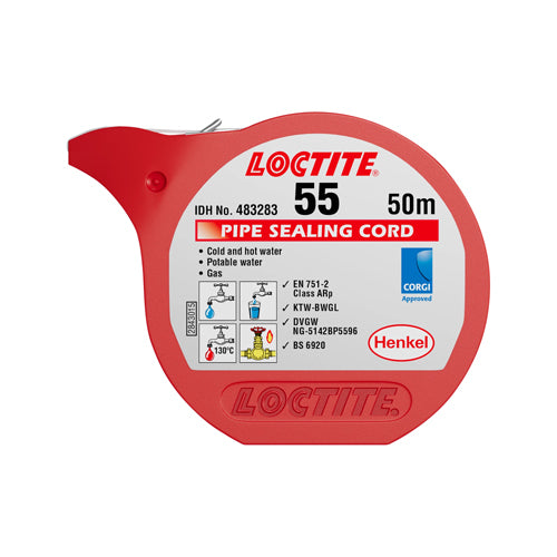 LOCTITE® 55 is designed for sealing of metal and plastic pipes and fittings. It needs no cure time and results in an immediate, full pressure seal. The ideal choice for a quick, easy and reliable seal. The product has approval for natural gas, hydrogen gas and potable water.